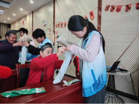 本网迅(通讯员 关媛 刘吉文 赵梦洁 邵丽萍 李娟)为了弘扬中华传统文化,增强社区居民之间的情感交流,感受到社区的温暖与关怀,营造和谐温馨的社区氛围,工程大社区携手社区老年人服务中心武汉工程大学校青年志愿者协会、武汉工程大学邮电与信息工程学院经济与管理学院“经心筑梦”志愿服务队、添翼志愿服务队、建筑与工程学院晨曦志愿者服务队、化工与材料学院弘毅志愿者服务队于10月28日开展““艾”老敬老、欢度重阳”系列活动,社区老年人、小朋友们与青年志愿者共聚一堂通过手工作画,手工制作养生枕、诗词朗诵活动、上门送慰问等丰富社区重阳节文化氛围,展现社区青年志愿者良好精神风貌。